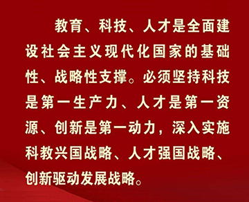 党的二十大在京召开,习近平指出,坚持科学是第一生产力、人才是第一资源、创新是第一动力,深入实施科学兴国战略、人才强国战略、创新驱动发展战略,开辟发展新领域新赛道,不断塑造发展新动能新优势。坚持教育优先发展、科技自立自强、人才引领驱动,加快建设教育强国、科技强国、人才强国。